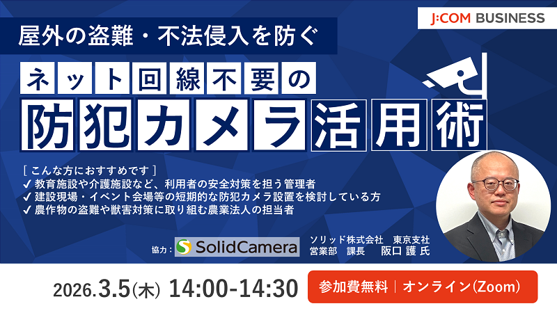本セミナーでは、そんな課題を解消する 「SIM型防犯カメラ」 をテーマに、